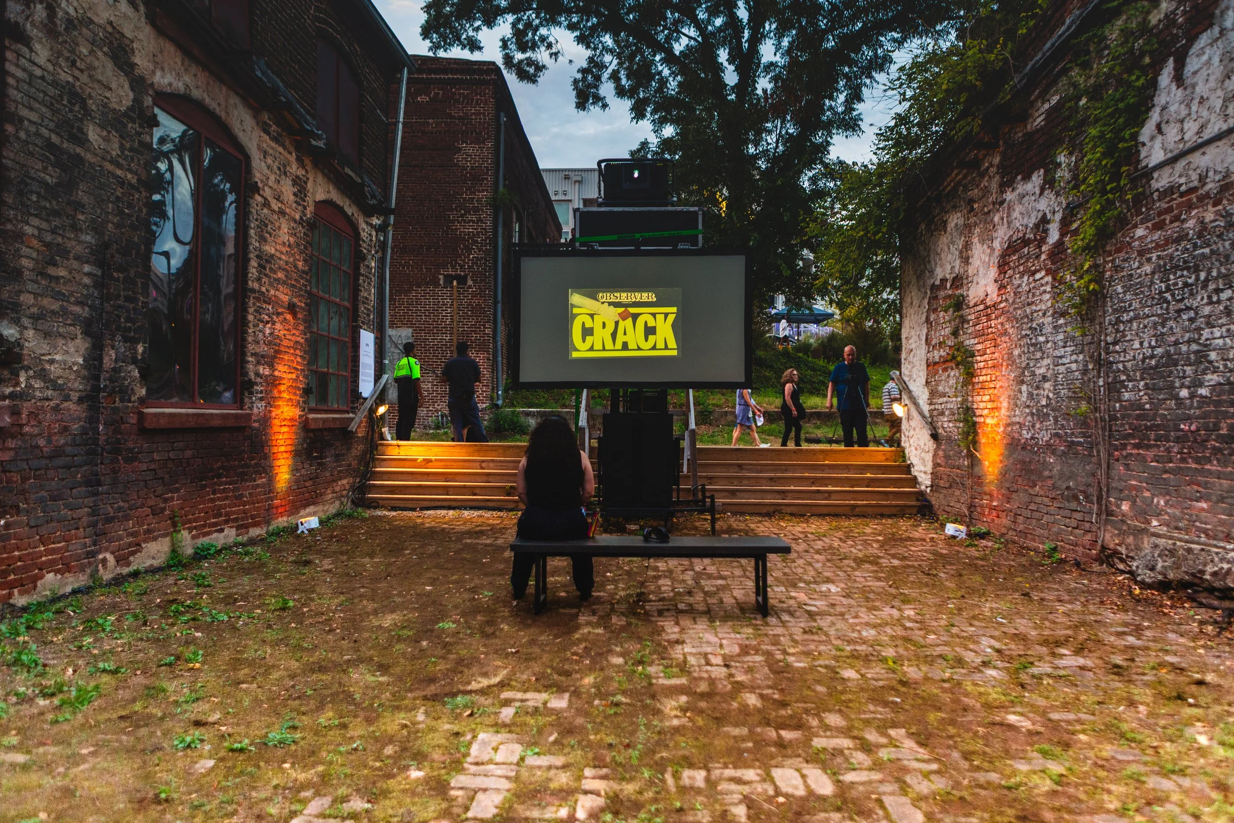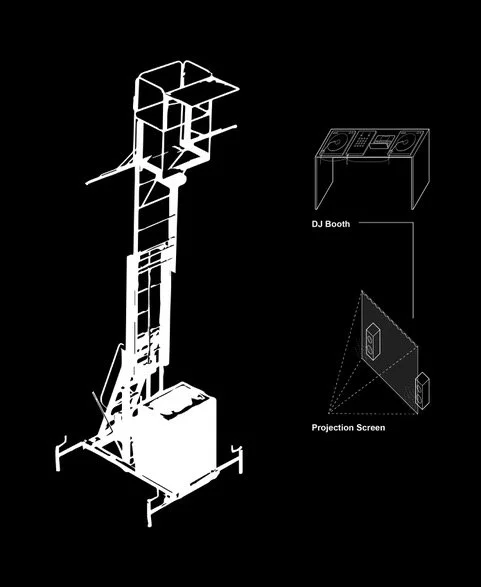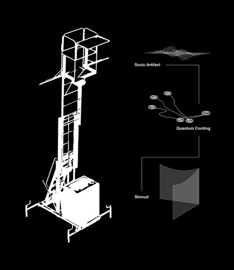 Drawing from Harry Garuba’s idea of animist materialism and the histories of displacement in Metro Atlanta, Admassu examines how Black life is captured, commodified, and yet continually maroon-ing through collective forms of care, performance, and belonging. The installation features projections, a customized maintenance lift, and an exquisite corpse video installation showcasing work from previous Unmonument artists Mitch McEwen, Amanda Williams, Felecia Davis, and Olalekan Jeyifous. A sonic installation immersed audiences in the layered resonance of the Trap, while video work visualized the mythic, ecological, and political dimensions of the Forest.